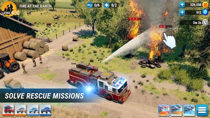 * Expand your fire station, equip new vehicles, and train your rescue teams.