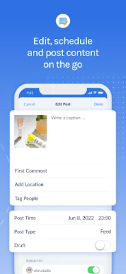 Our app is designed with efficiency in mind. Craft your posts on the go, save them as drafts, then sit back as they're posted automatically according to your schedule.