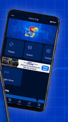 - Gameday Information: Stay up to date with the latest Kansas Jayhawks gameday information and have exclusive access to a light show, FanCam and more!