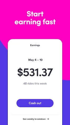 Get paid quickly with options to cash out instantly, daily, and weekly. Plus, earn bonuses, rewards, and keep 100% of rider tips.