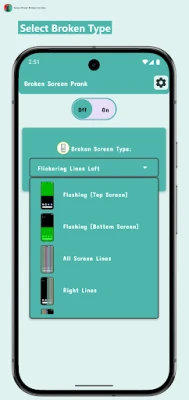 🪟 Custom Broken Screen Types: You can select from a range of broken screen types, including various styles like lines and green glitches. This effects can appear anywhere on the screen, whether in the middle or along the sides, top and bottom.