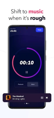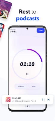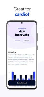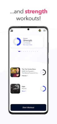 A unique workout experience where you listen to podcasts during the relaxing parts of your workout and seamlessly shifts to music when you're giving it your max.