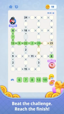 Simply place numbers into empty squares to complete math equations and create a path from start to finish. Every correct move brings you closer to victory, making it an exciting blend of math crossword puzzles, cross math challenges, number games, and brain-training challenges.