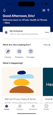 Whole Health & Fitness is a place for Walmart associates to belong, with experiences that empower and equip all to live with meaning and purpose. Use the app to learn about facility amenities and enroll in group fitness classes, recreation leagues and whole health experiences.